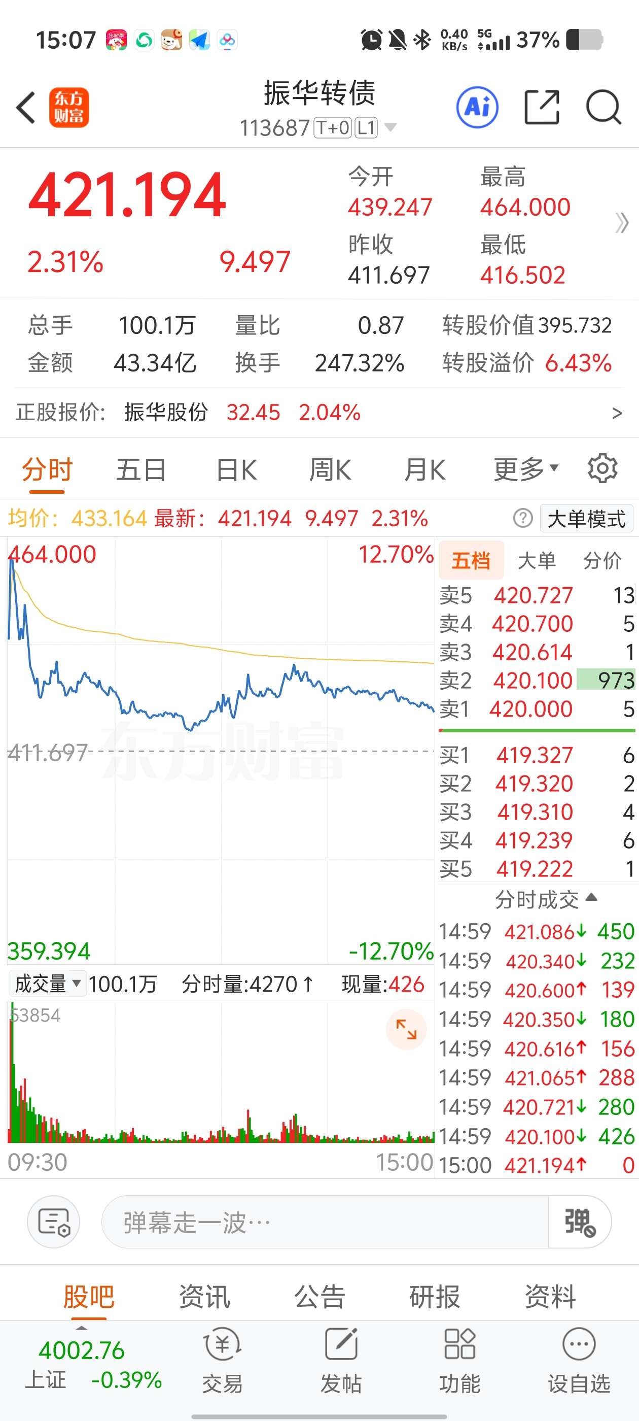 $振华转债(SH113687)$ 换收率 200% 是为什么
