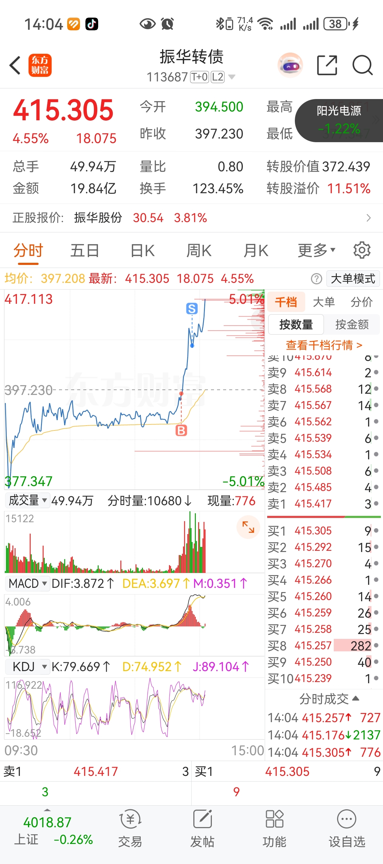 $振华转债(SH113687)$ 卖飞 一直缩量拉升 放量砸盘跑了