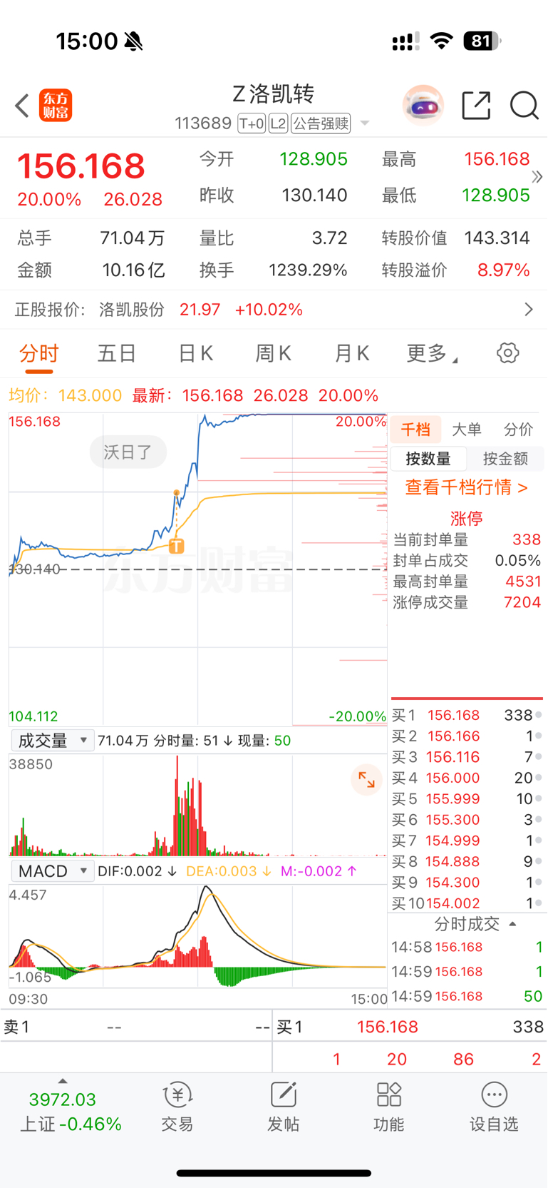 $Z洛凯转(SH113689)$ 快进快出没挣钱