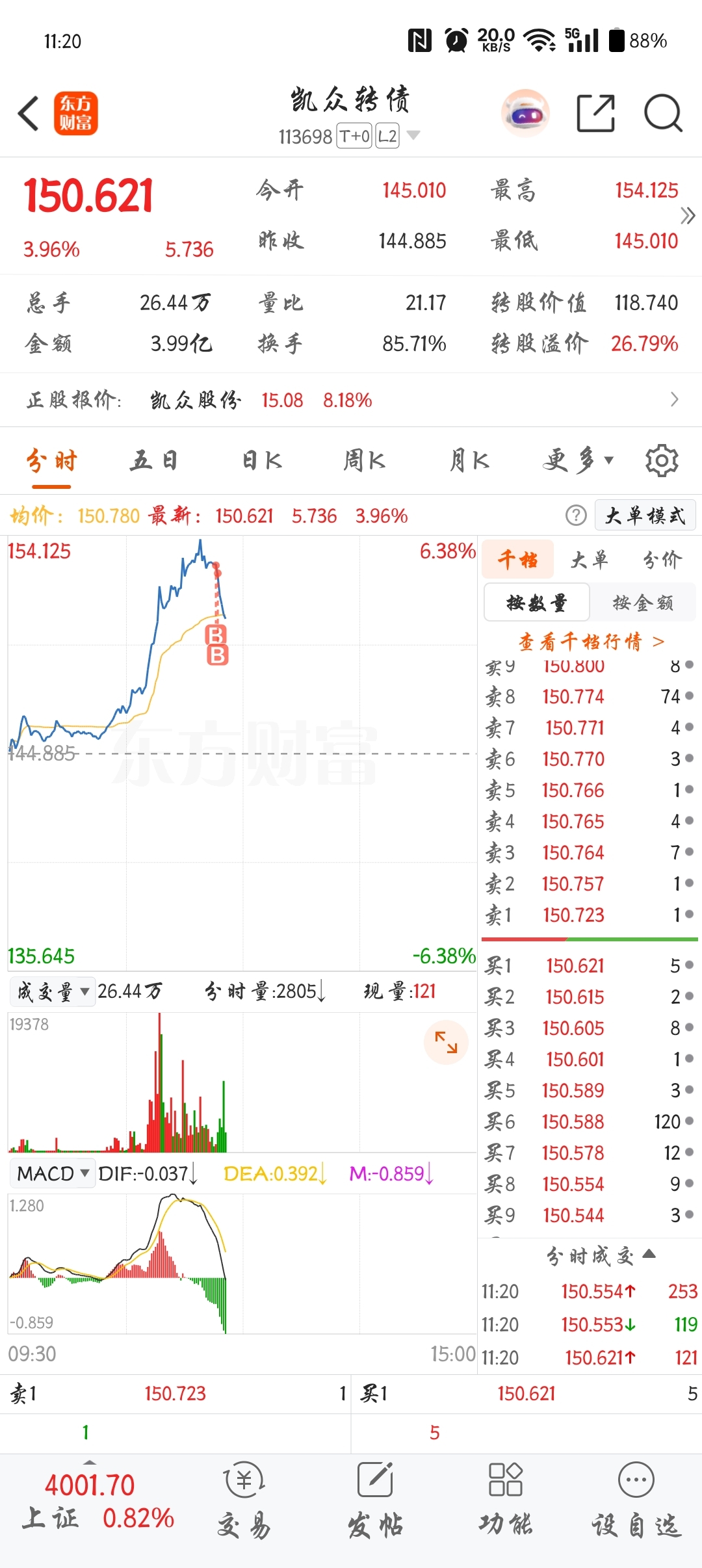 $凯众转债(SH113698)$ 我对不起大家,一买就开始跌了