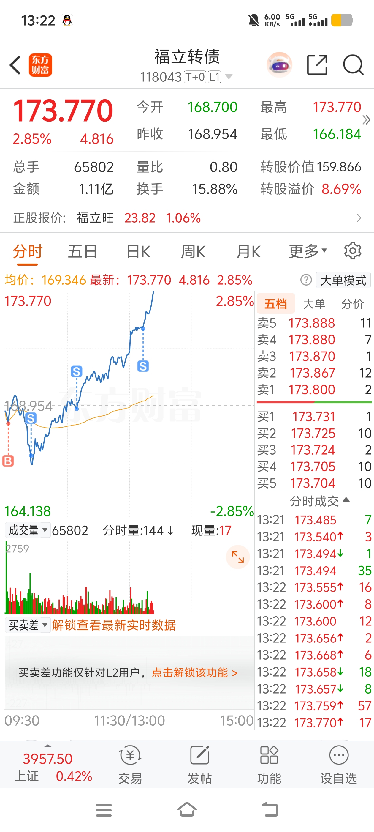 $福立转债(SH118043)$ 今天若是没瞎卖,亏的差不多回来了
