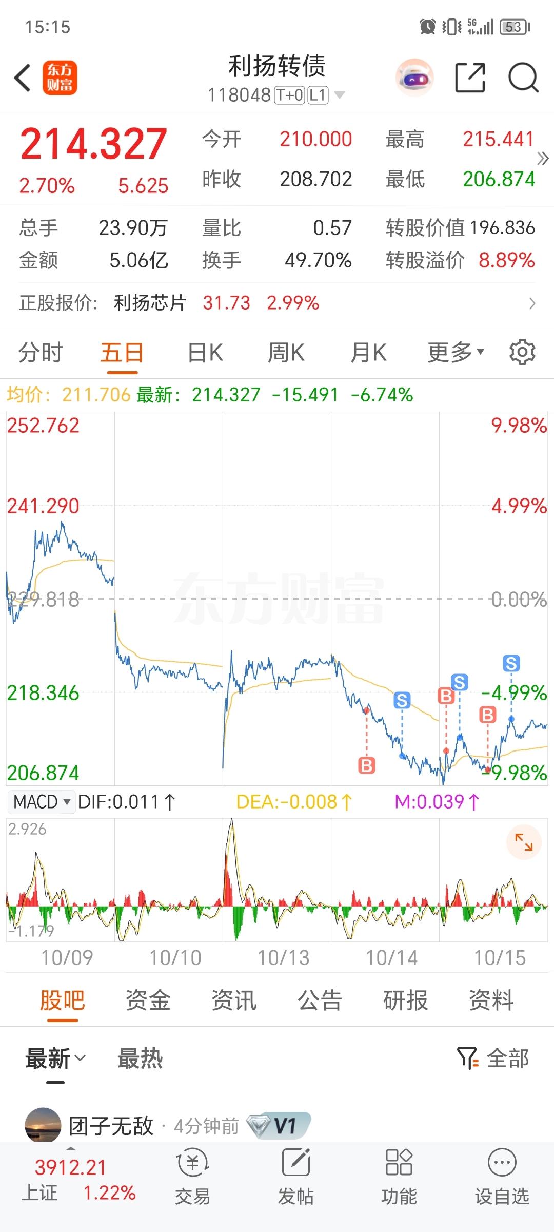 $利扬转债(SH118048)$ 好不容易T回本,还赚几百元,先闪,开仓位置不对。等机会再来