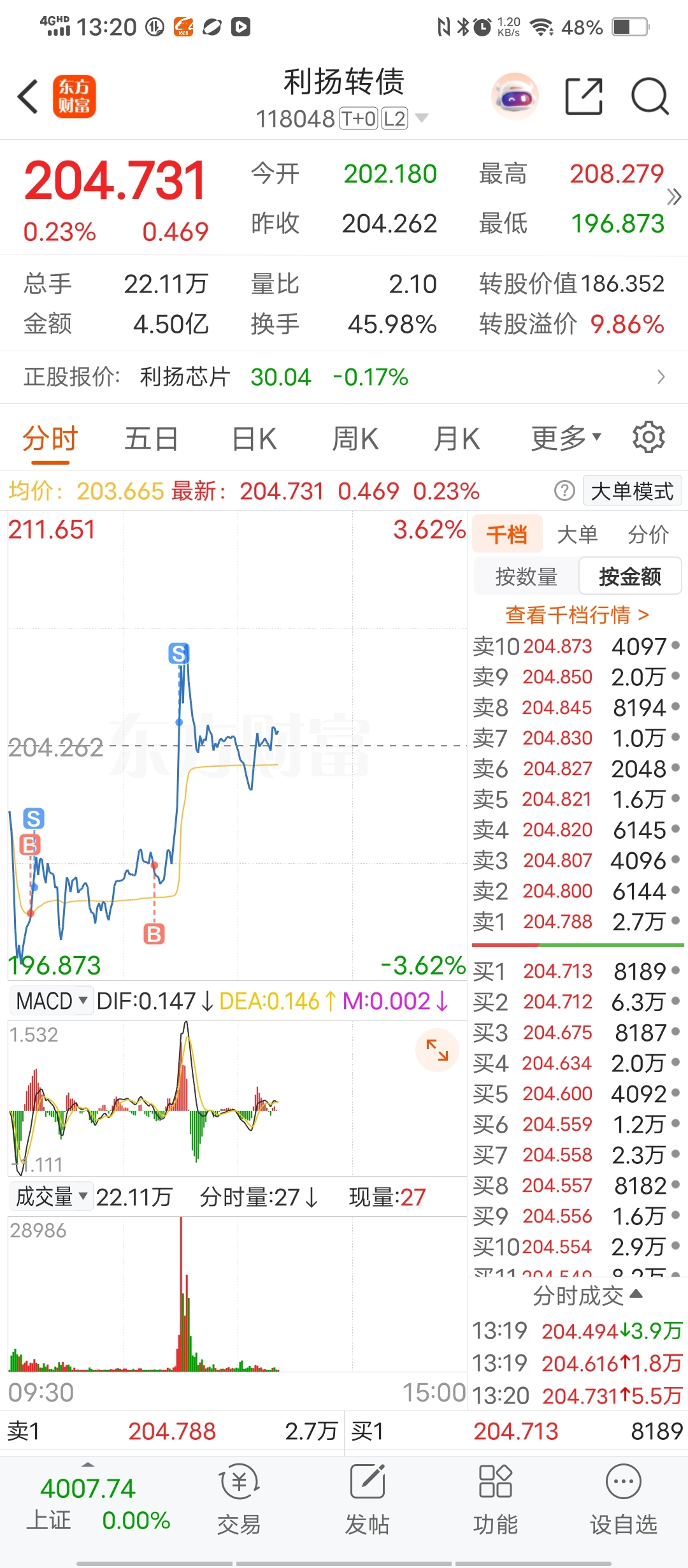 $利扬转债(SH118048)$ 今天尾盘利扬可潜伏,不要满仓