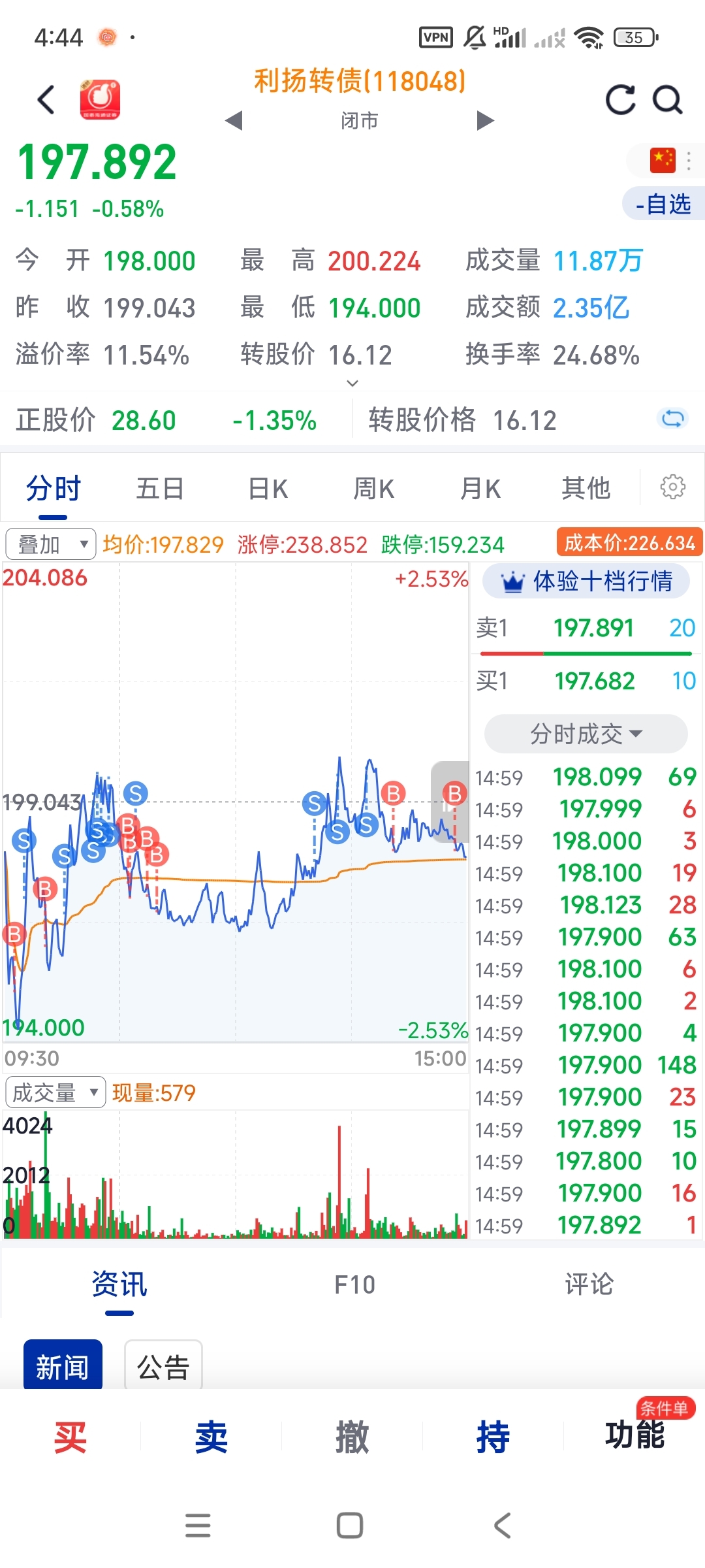 $利扬转债(SH118048)$ T了半天,就是不敢买多