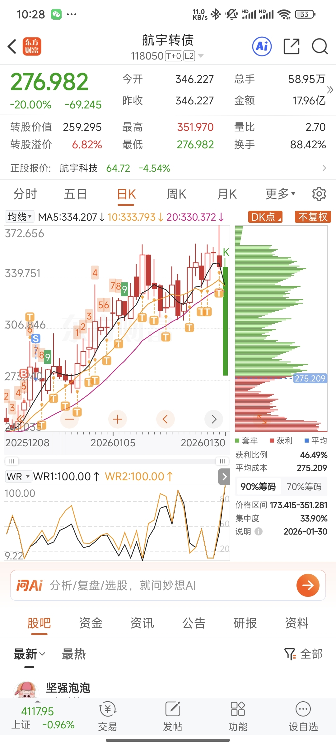 $航宇转债(SH118050)$ 要不是这两天被大中按在地下摩擦,我也能分到碗大面
