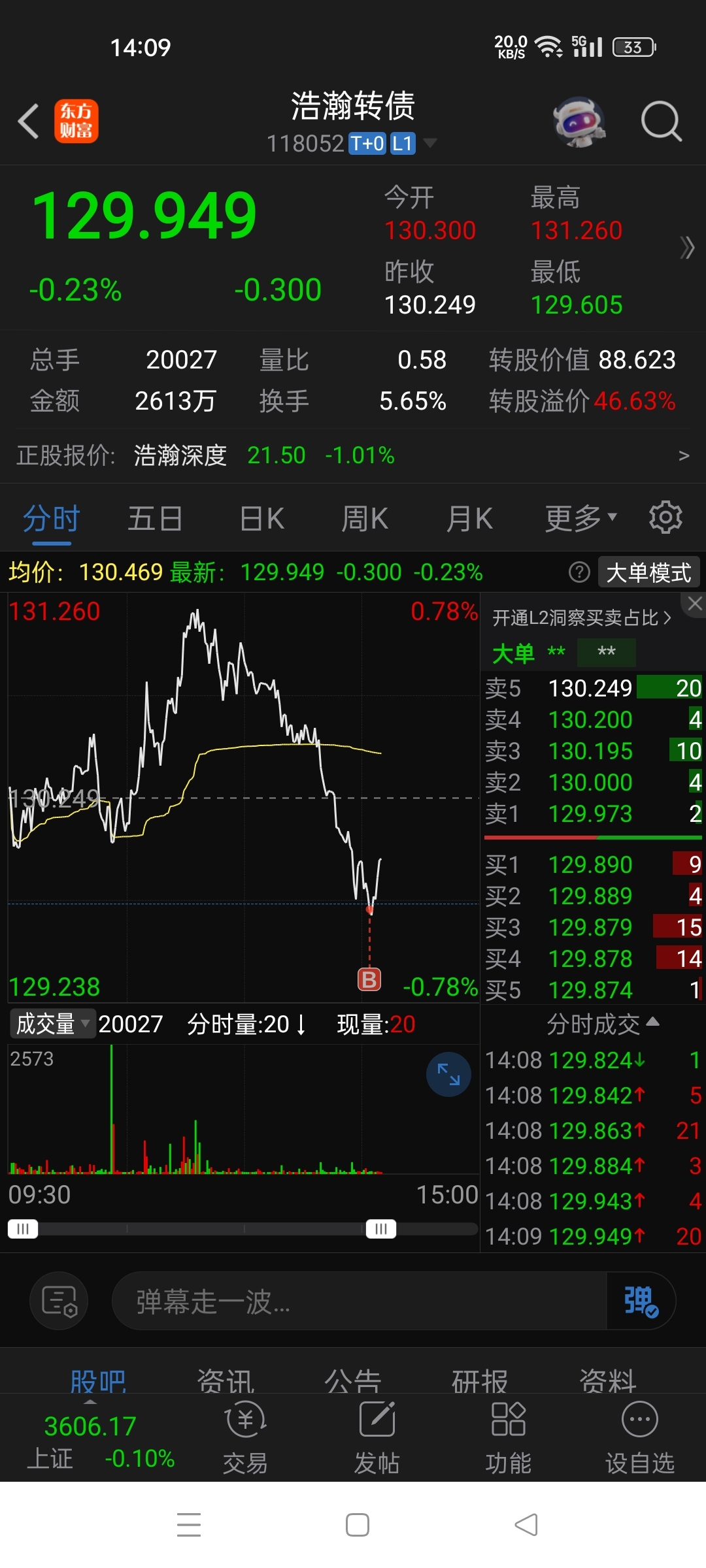 上周大涨那天138抛了,今天129.65再次买入浩瀚,盘子小,也没怎么涨过,保持