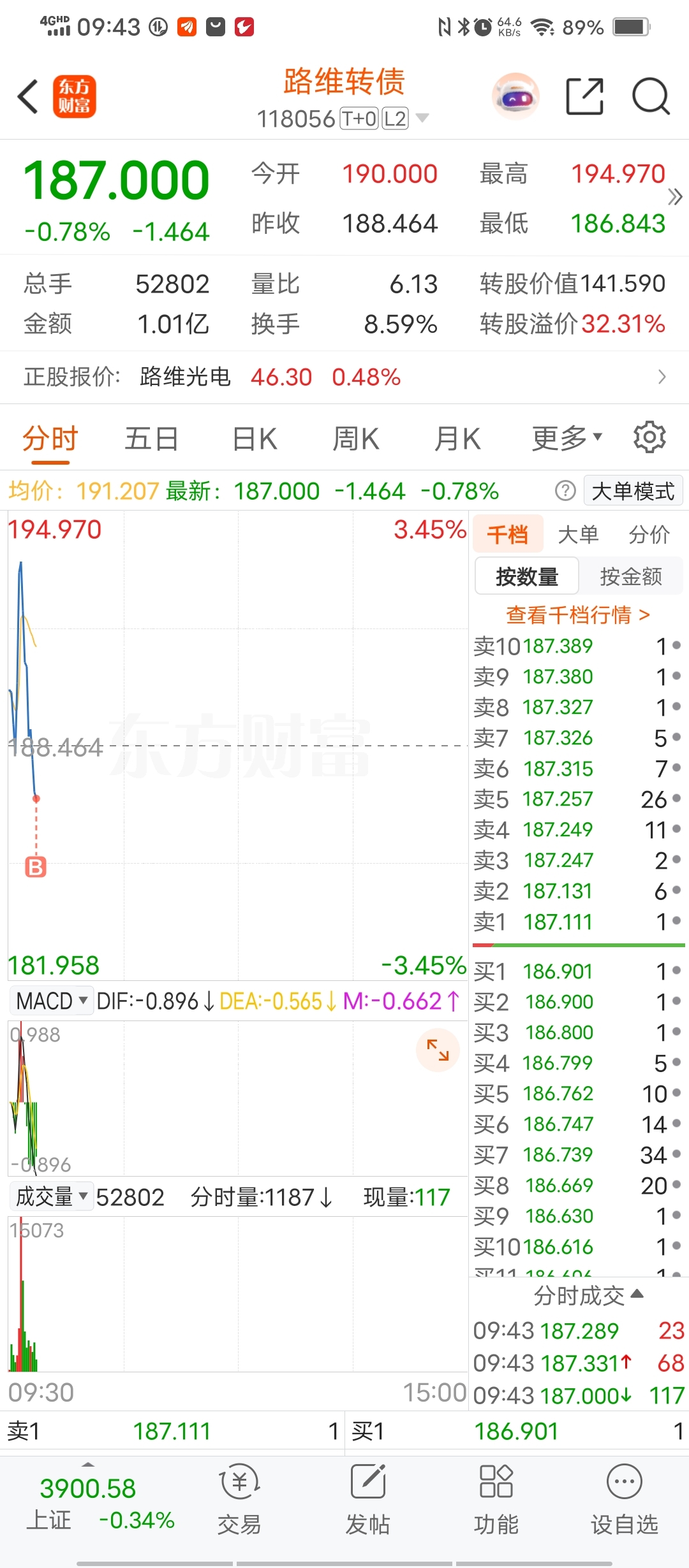 路维又来了,187以内少量持仓做波段,今天大盘不好又是周末