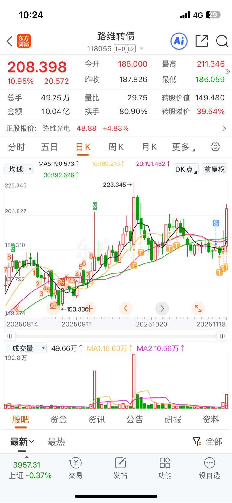 $路维转债(SH118056)$ 守了两月今天做T作废了