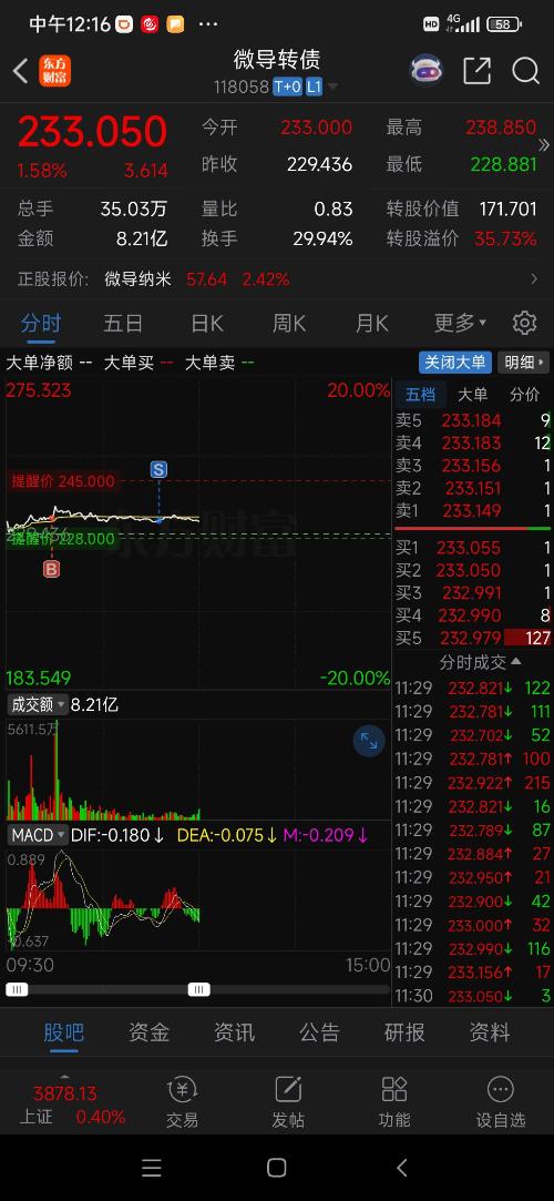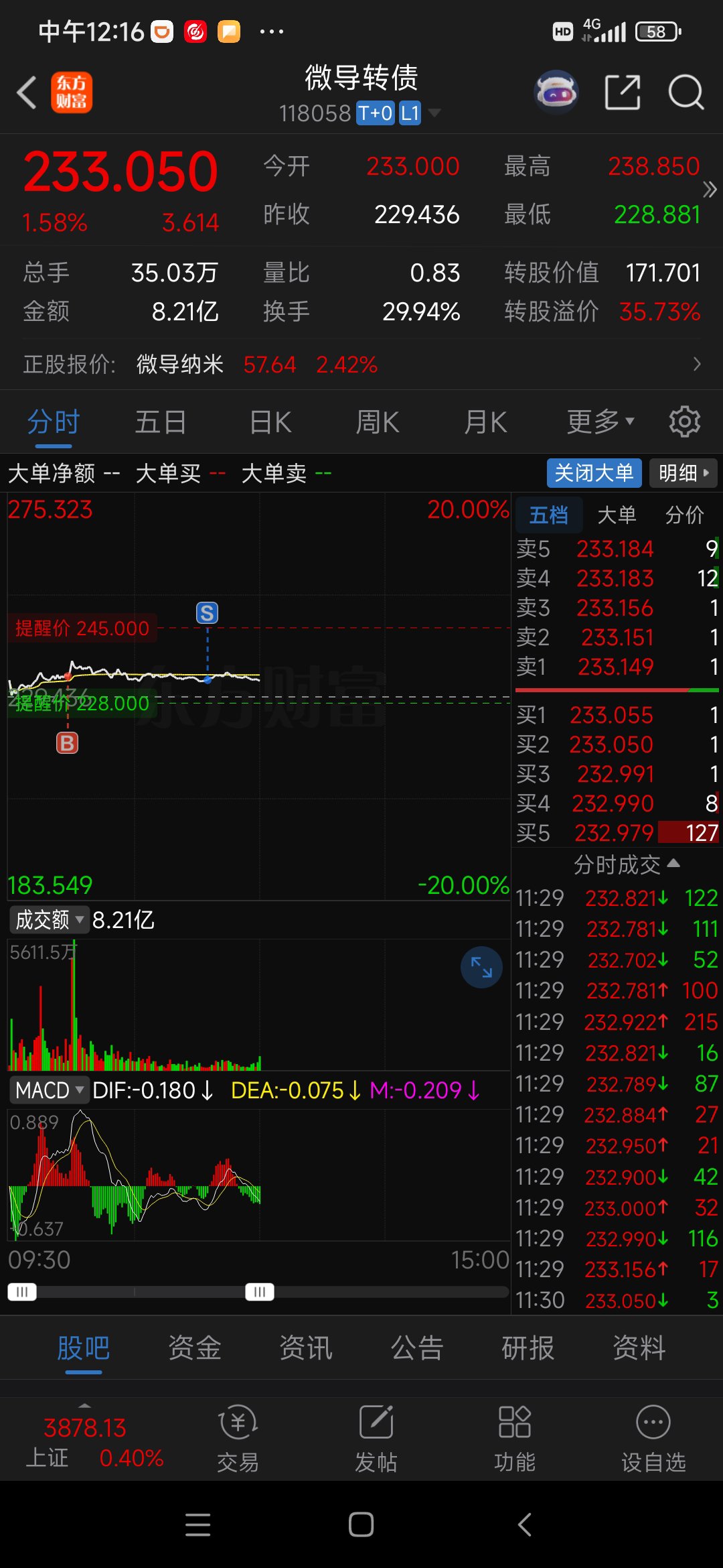 $微导转债(SH118058)$  234.0已买入,只做线上