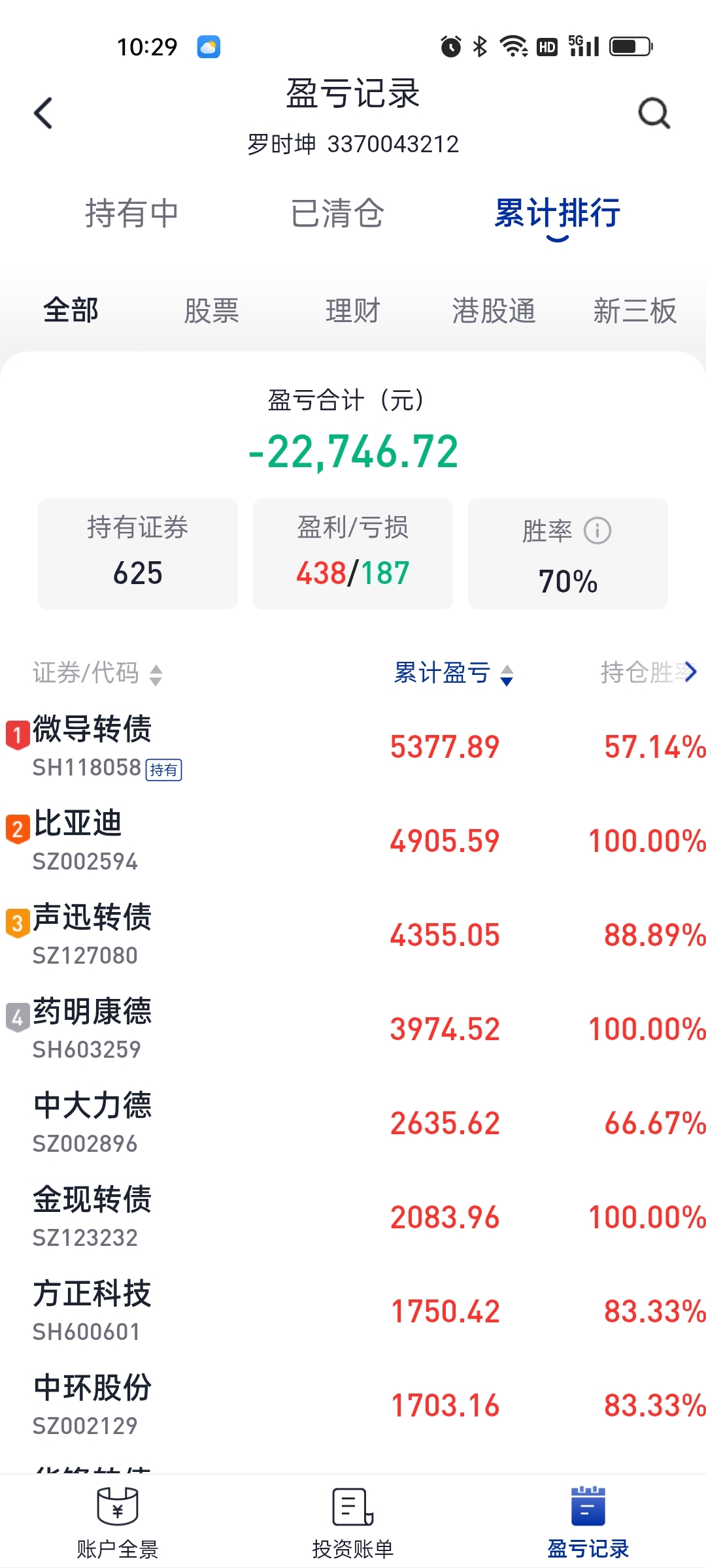 今日实盘,一只可转债成为入市以来盈利最多的资产,我一直操作到他退市,看能否成为一