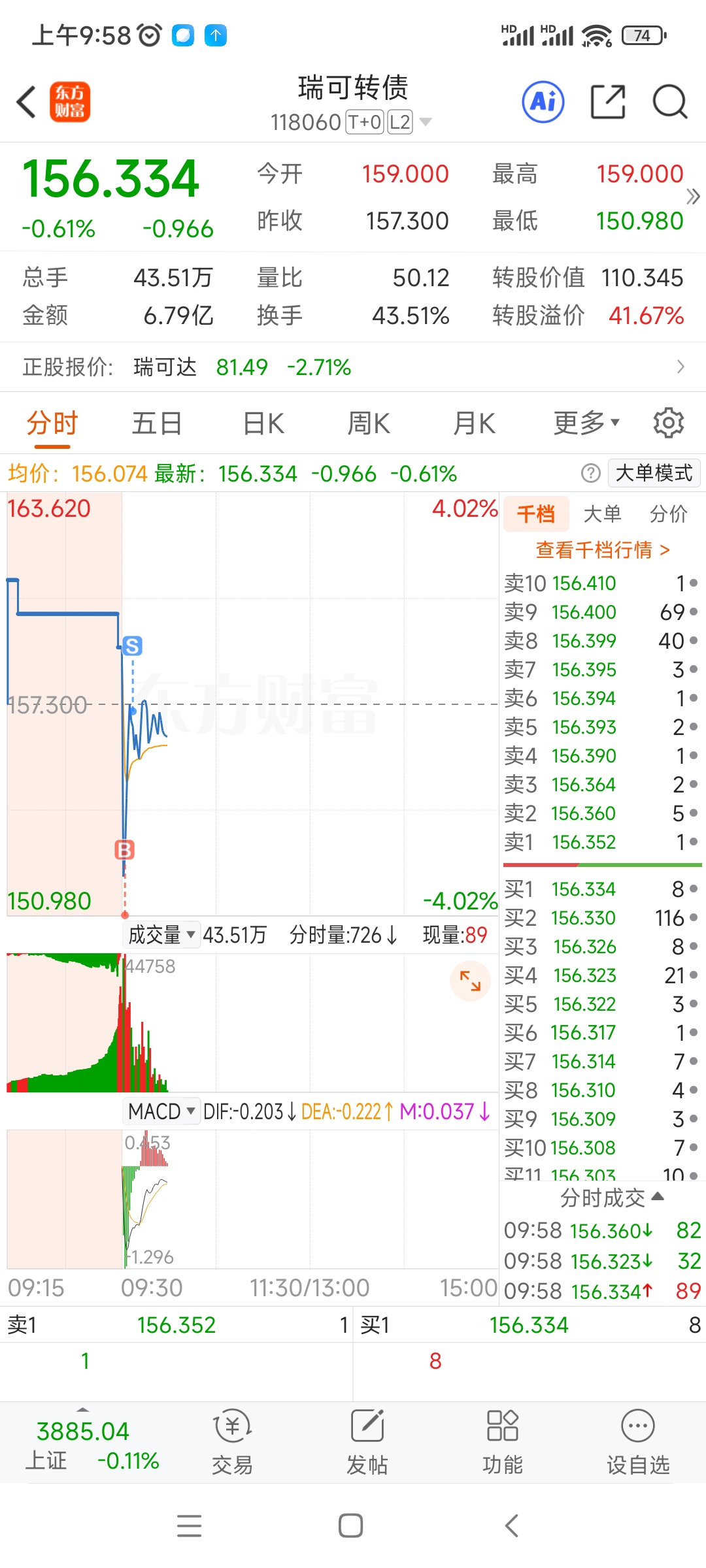 $瑞可转债(SH118060)$ 昨晚选的可转债,还是不敢全仓去做