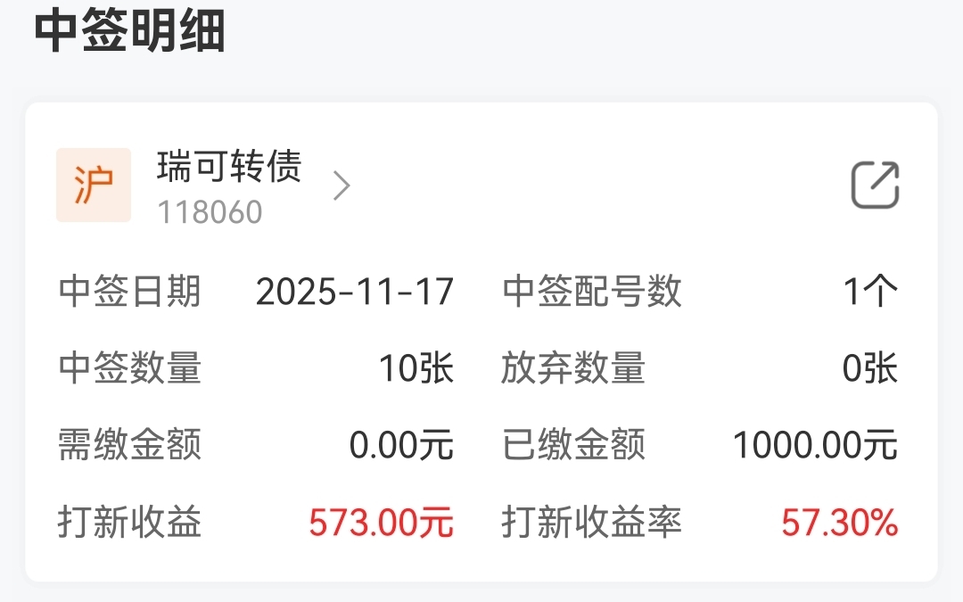 $瑞可转债(SH118060)$ 上周五上市当天走的,不贪