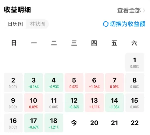 18日,市场继续下跌,而且跌幅扩大,痛感增强,特别是电池、现金流等指数均出现较大幅度下跌,通常护盘的农业银行也出现下跌。基少的场外基金账户下跌1%+,连续三个交易日被锤。