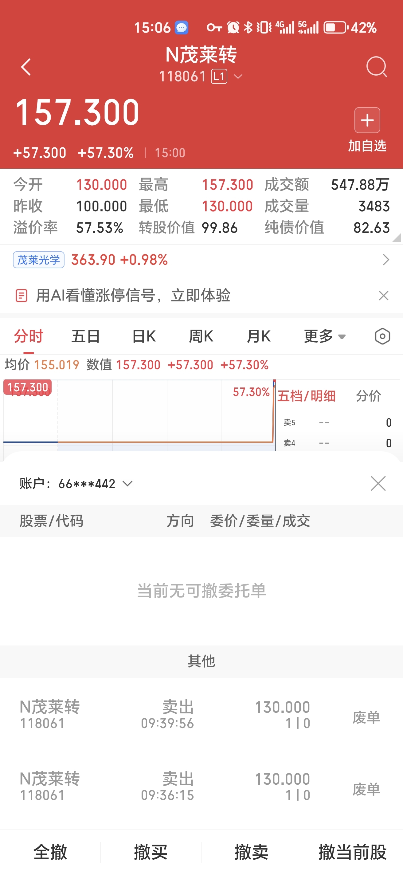 $N茂莱转(SH118061)$ 你们都是买,我是卖