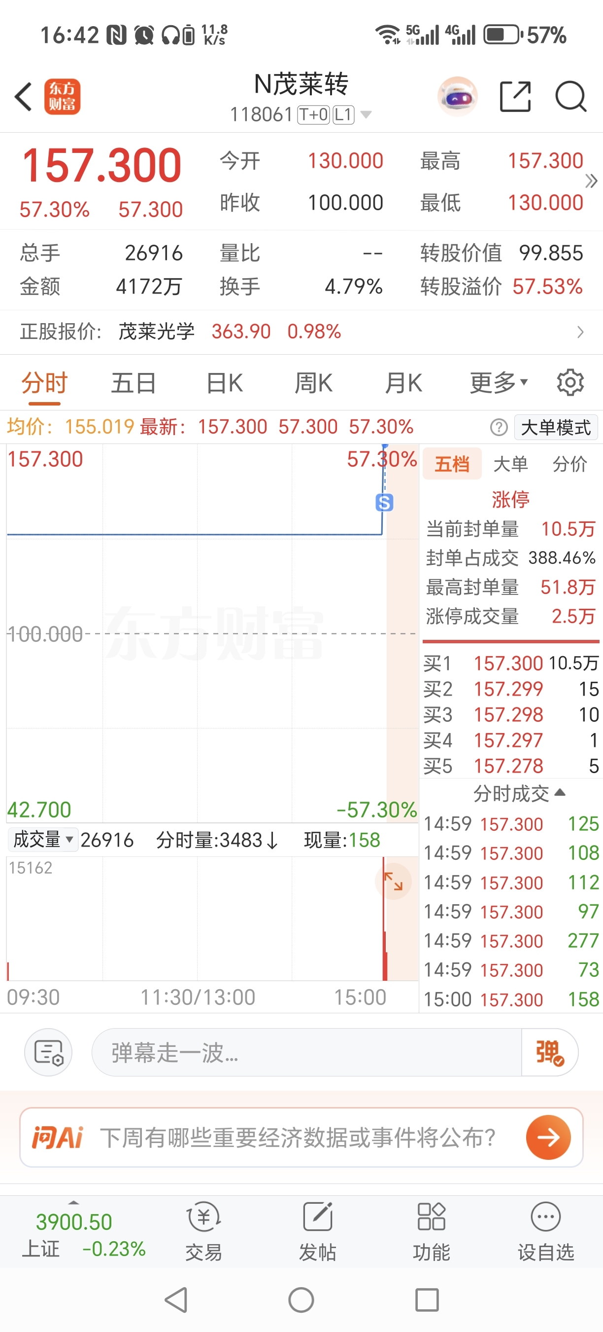 $N茂莱转(SH118061)$ 明天涨到180,恭喜恭喜