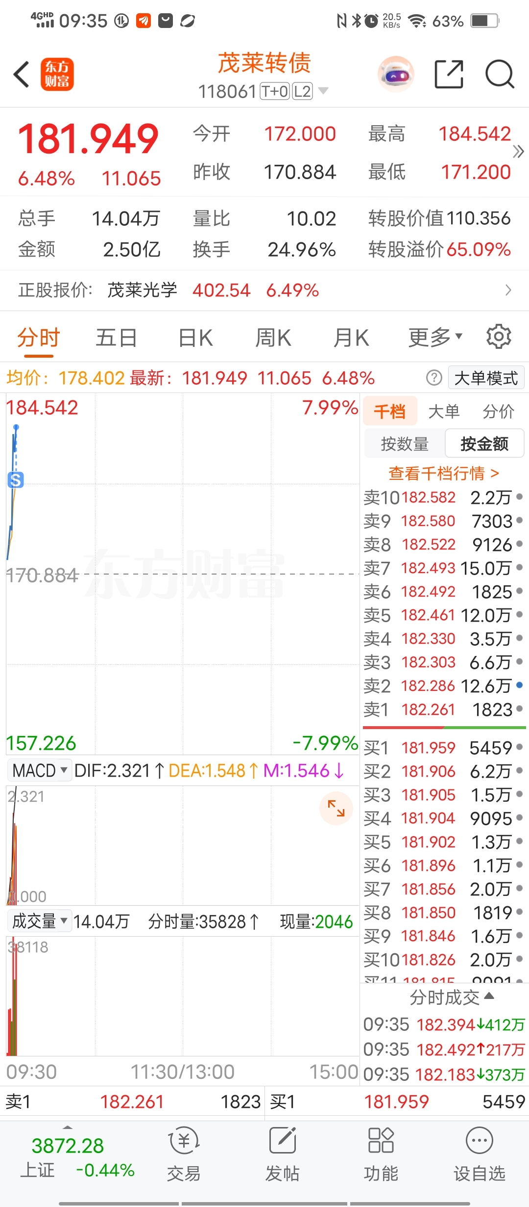 $茂莱转债(SH118061)$ 上市第二天开盘170买的,本想给我一个惊喜,178不走,却让我做了股东,今天先走出来散散步