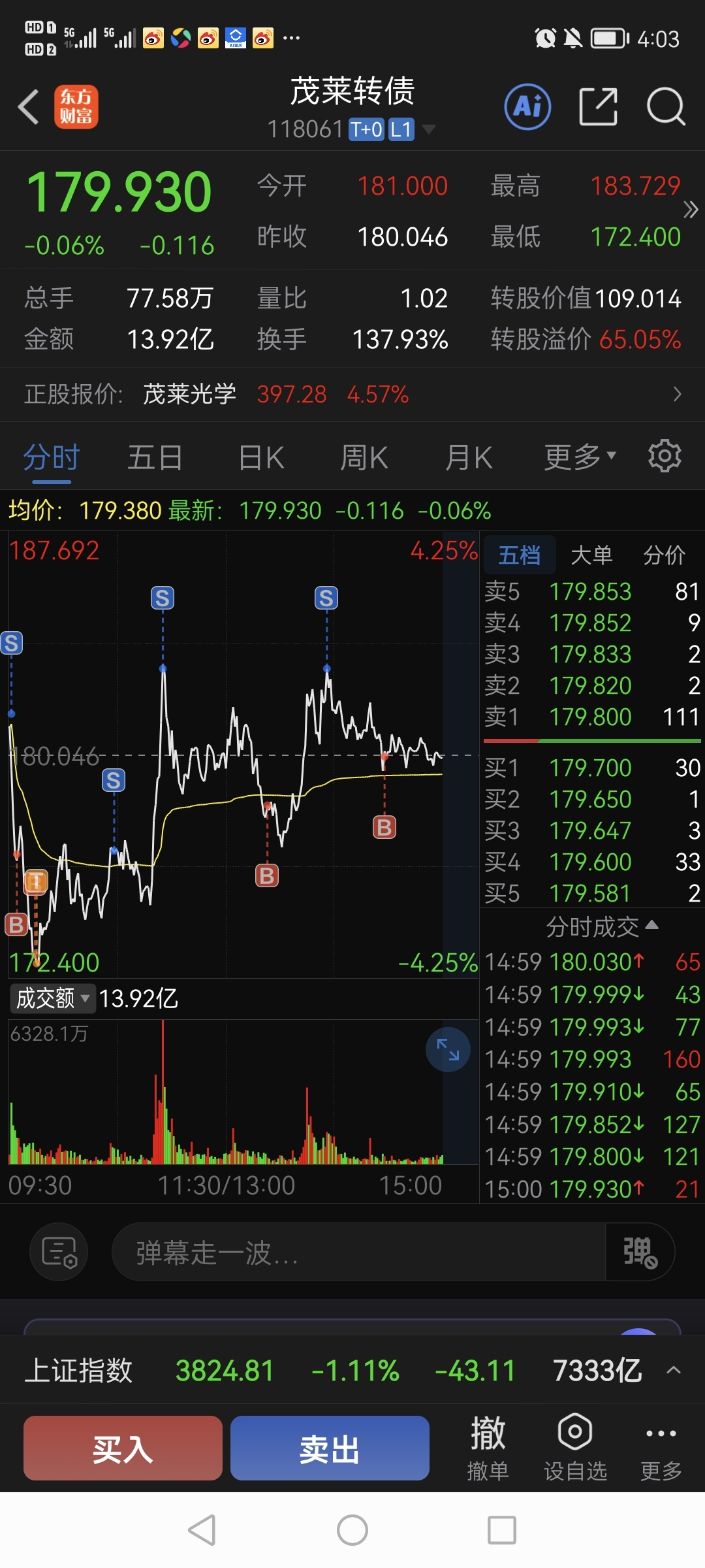 $茂莱转债(SH118061)$ 过夜了,明天继续收割主力