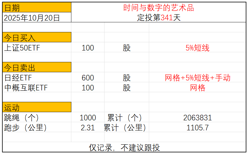 运动与投资第341天2025年10月20日今日定投:上证50ETF买入100股日