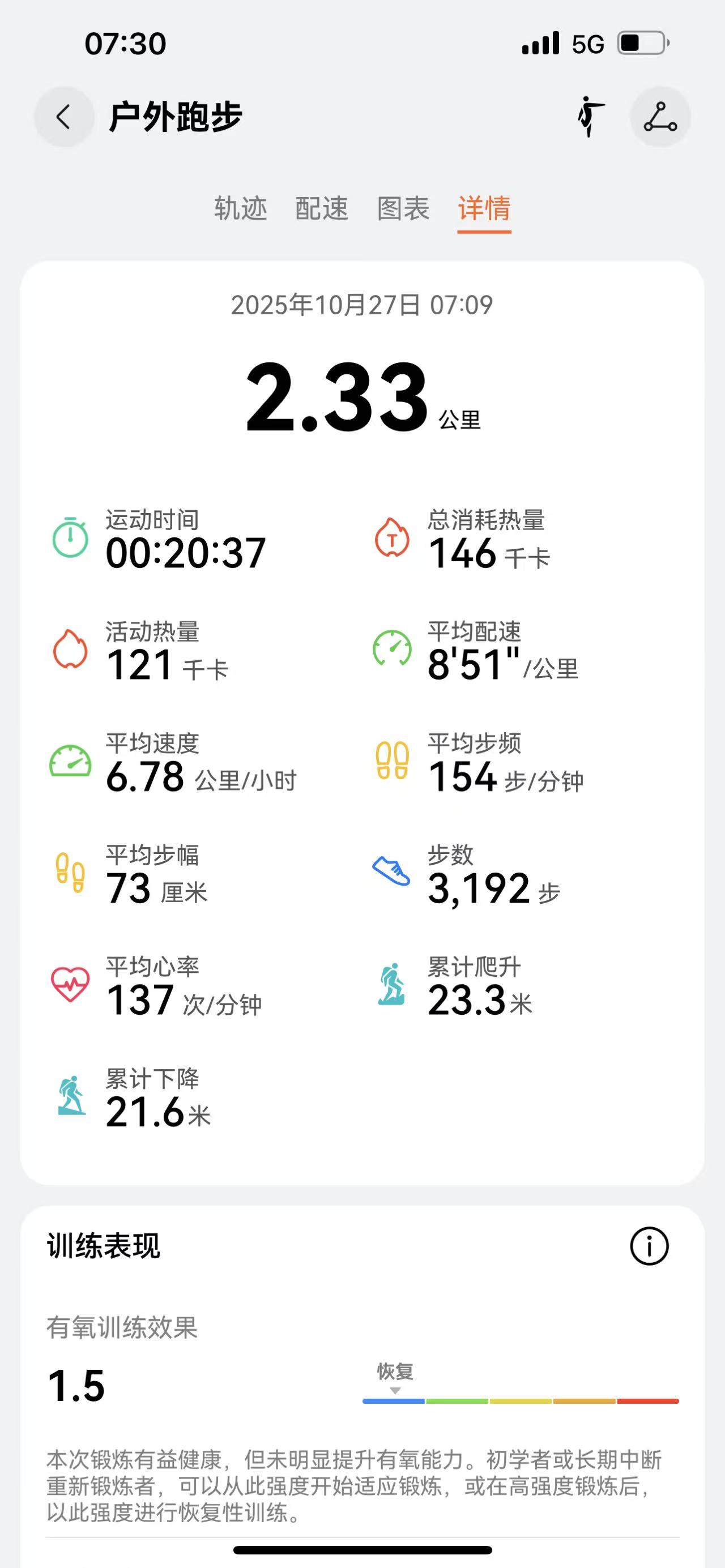 慢跑:2.33公里,累计慢跑:1122.14公里