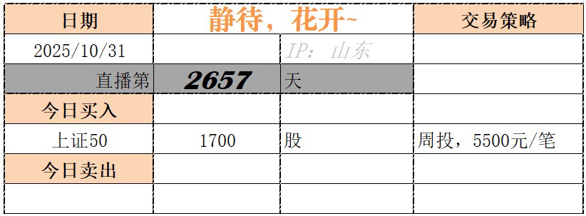 定投第2657天,今日买入上证50ETF1700股,今日盈亏-3万元,累计盈亏+414万元,静待花开~(实盘,原创,无小号)