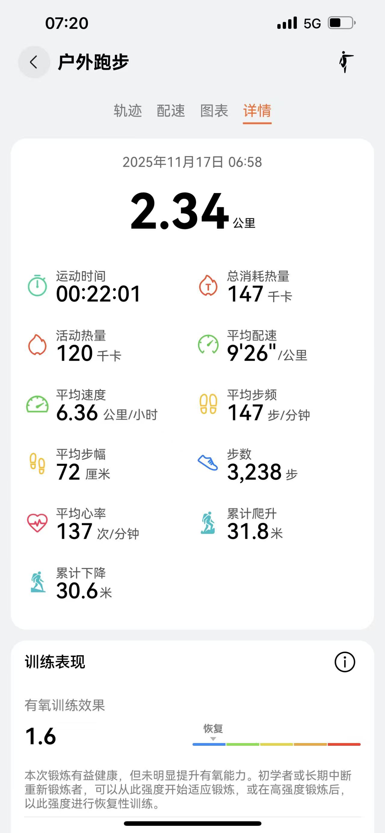 慢跑:2.34公里,累计慢跑:1166.37公里
