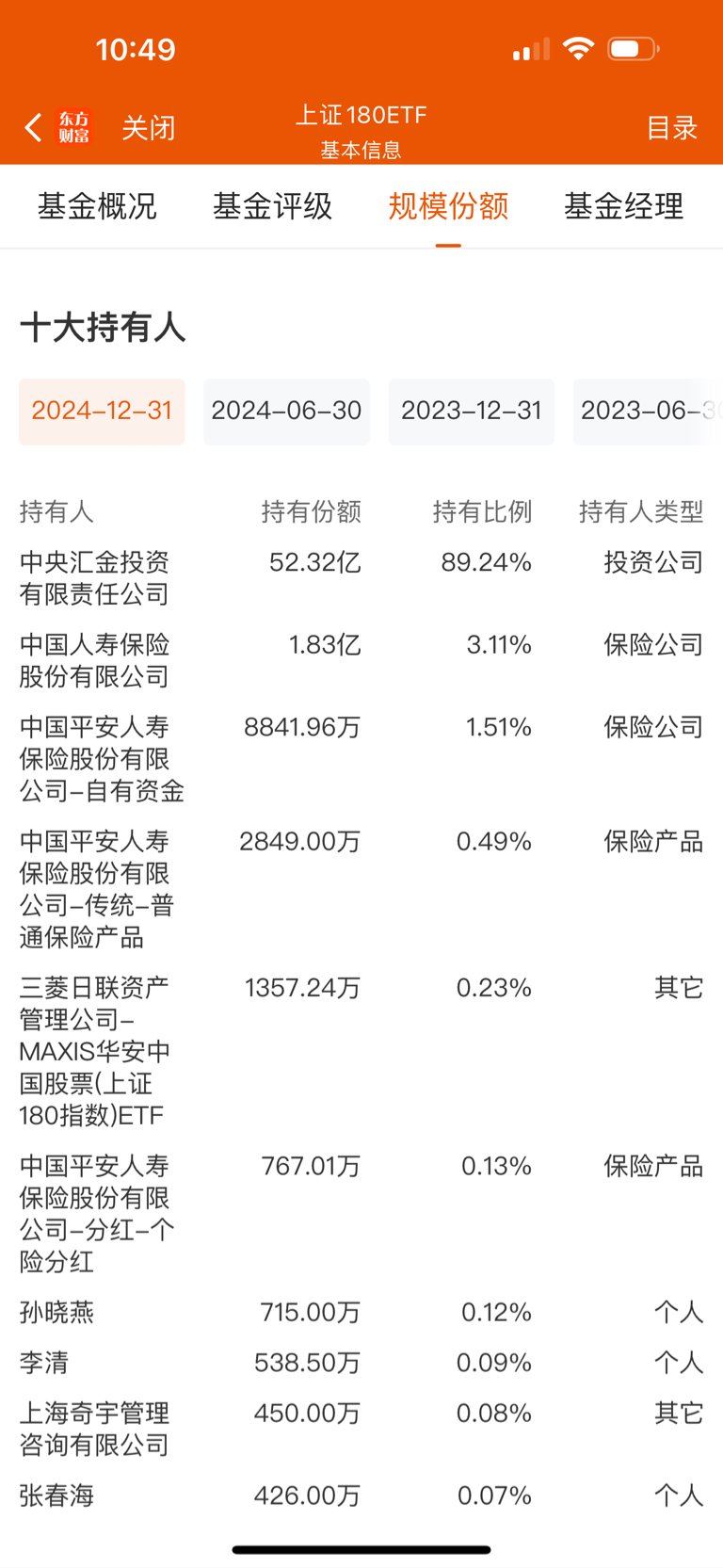 $上证180ETF(SH510180)$ 中央汇金国家队持有90%,险资持有5%,合计已经95%。长持优选