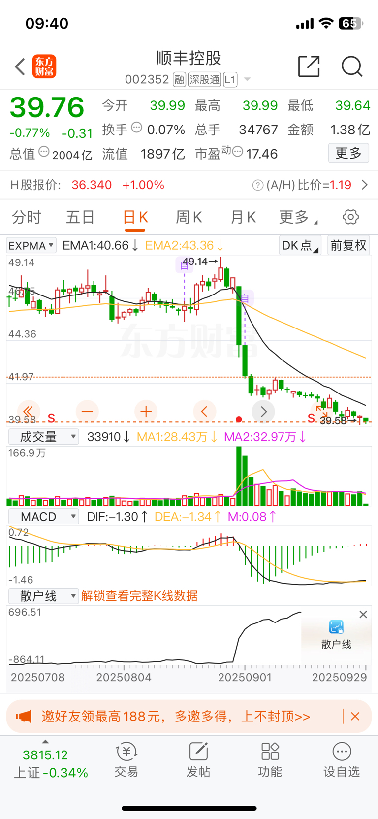 学了我这篇文章,遇到顺丰这类走势就不会慌,也知道该不该买了。很明显,不该买!