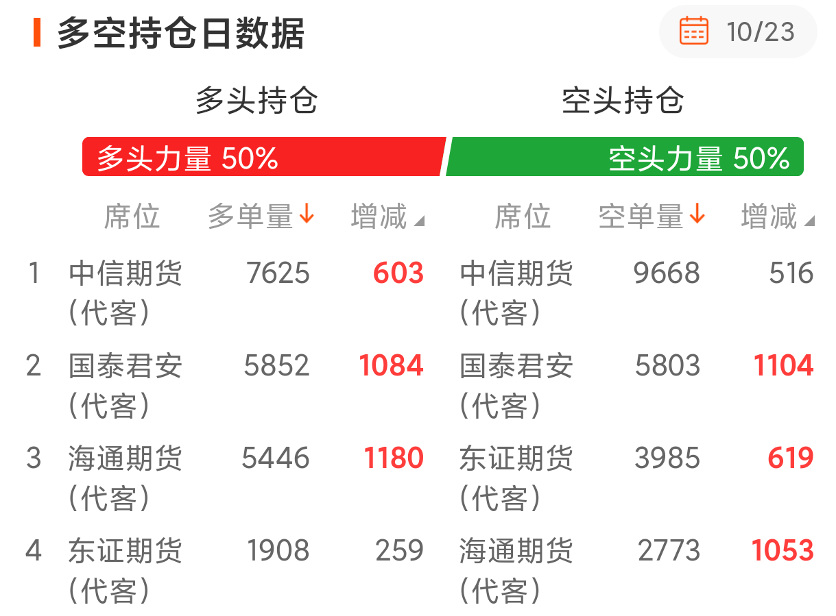 从11月期的期指数据来看,中信席位的多头资金加仓增持了多单603手,空头资金加仓增持了空单516手,对冲之后多头小幅加仓进场,利好于短期表现。