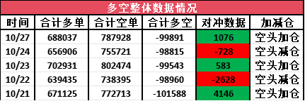 不过过往经验来看,空头往往是随着上涨慢慢的加仓空单做对冲,在整体压力比较大的时候一波就大幅度的释放,所以短期空单压力增加,但不一定就不能继续上涨,10万手一般是一个分界线。