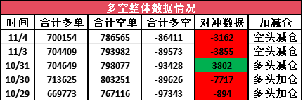 从过往的多空数据情况来看,当多空主力的净持有空单量回到七八万的时候,逐渐进入机会区域的概率是比较大的,总空单量越少,说明主力需要对冲的压力就越小,也说明机会越好。