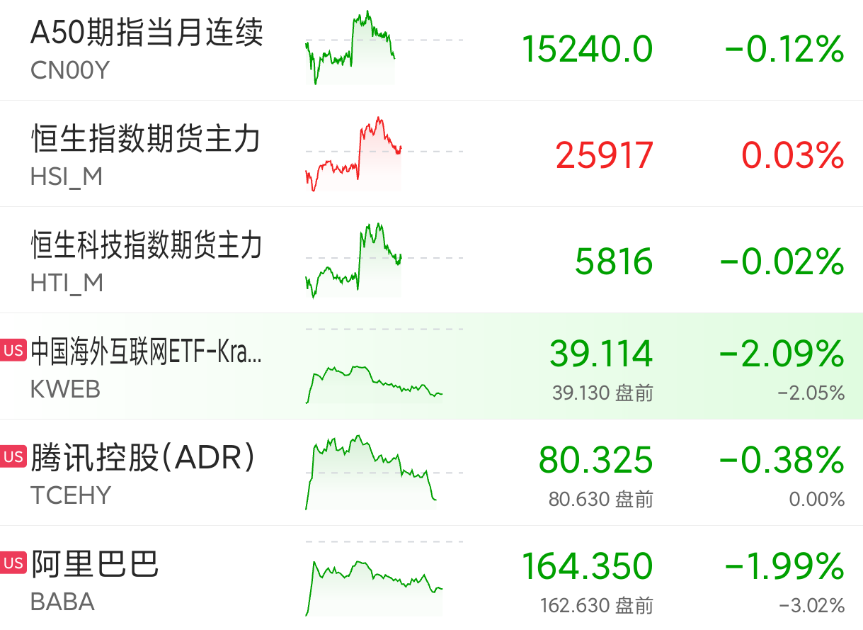 美股市场的中概股晚盘表现也不好,腾讯阿里均有下跌,中概互联网的跌幅超过了2%,不过目前的跌幅来看,也只是跟跌港股科技,还是需要观察周线月线级别的变化。