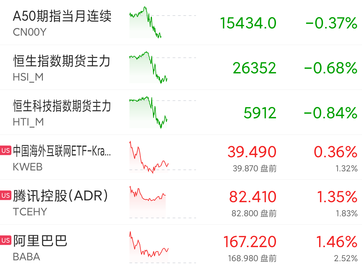 晚盘的中概股表现也一般,都是高开跳水的行情,阿里、腾讯都有短线示弱信号,中概互联网一度翻绿,调整压力还是有的,感觉还需要一些利好来维持市场的信心。