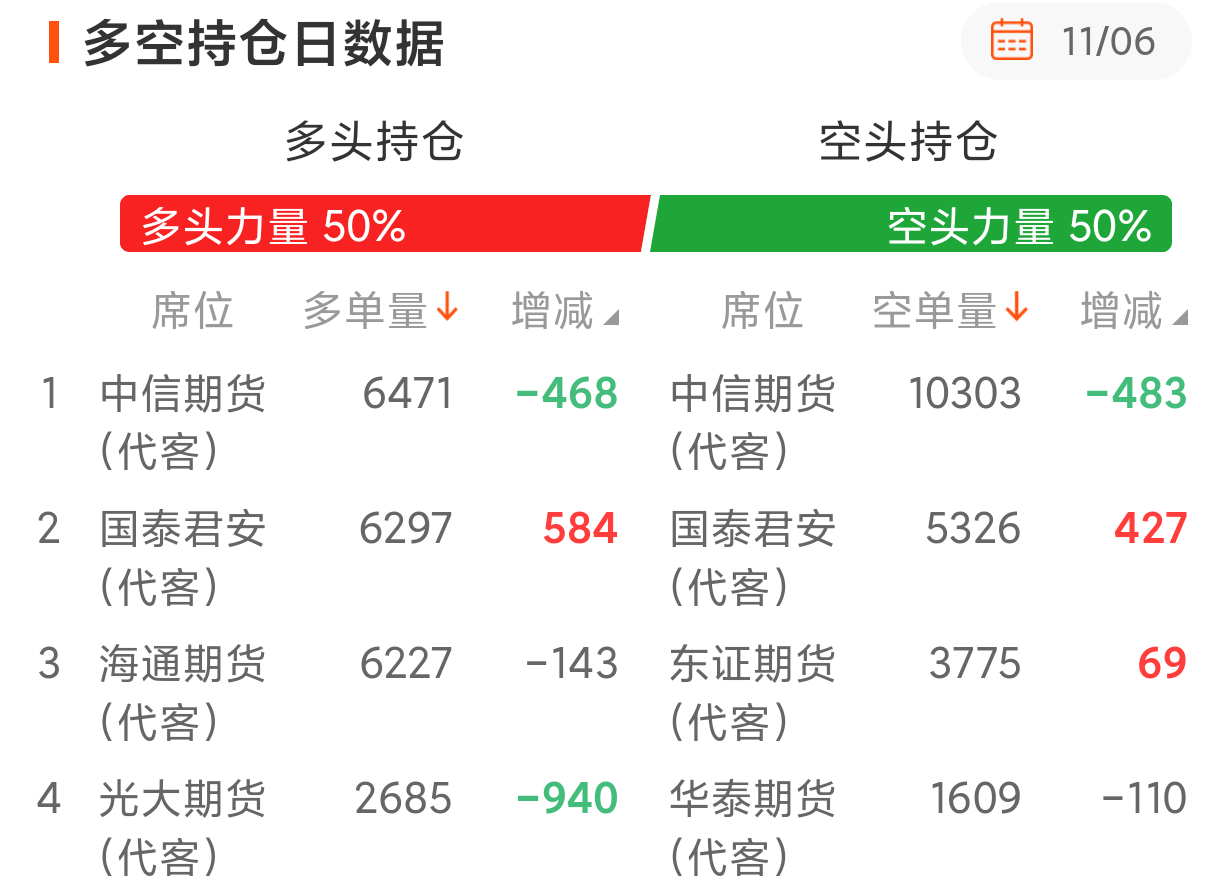 从11月沪深300的期指数据来看,短期中信席位的多头减持多单468手,空头减持空单483手,对冲之后空头小幅度减持。