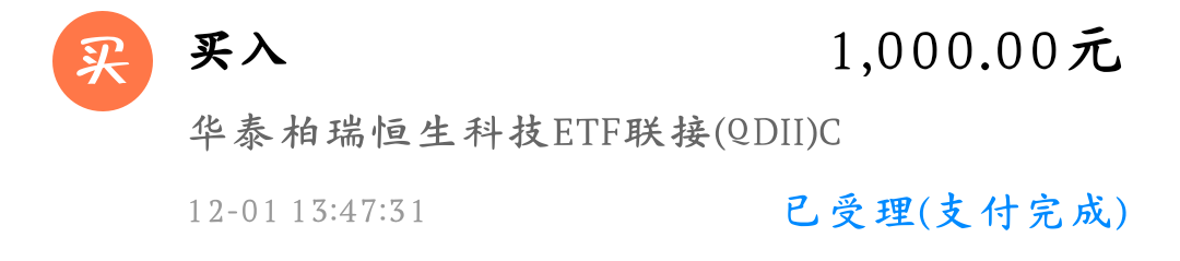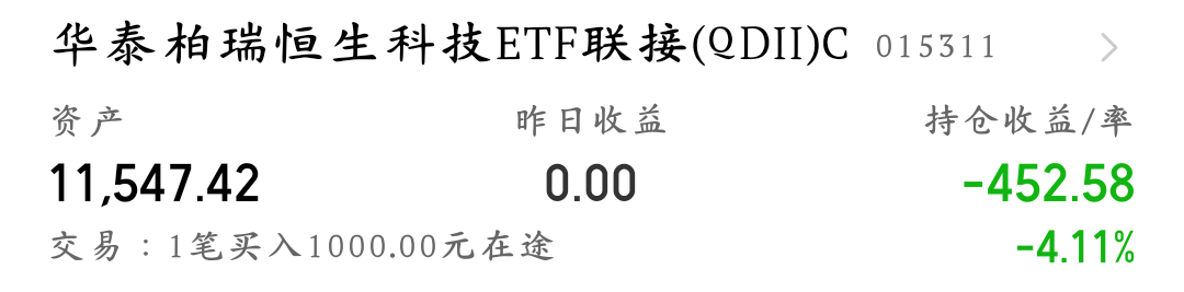 买进1000的 $华泰柏瑞恒生科技ETF联接(QDII)C(OTCFUND|015311)$