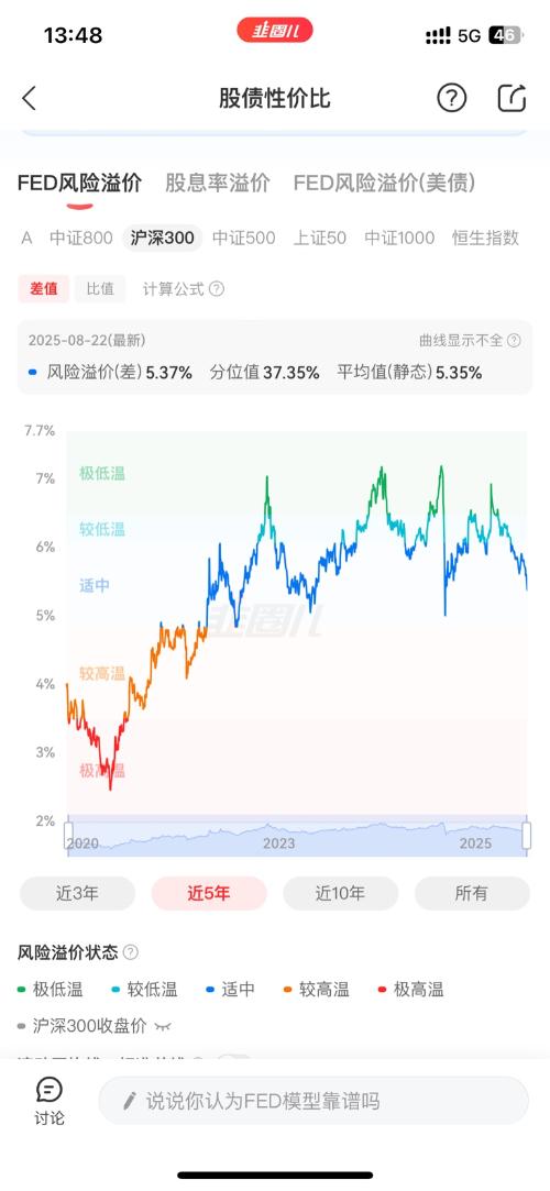 你光看5年,当然高了。你拉全部时长就没那么高。还有从股权溢价指数看,也不高。