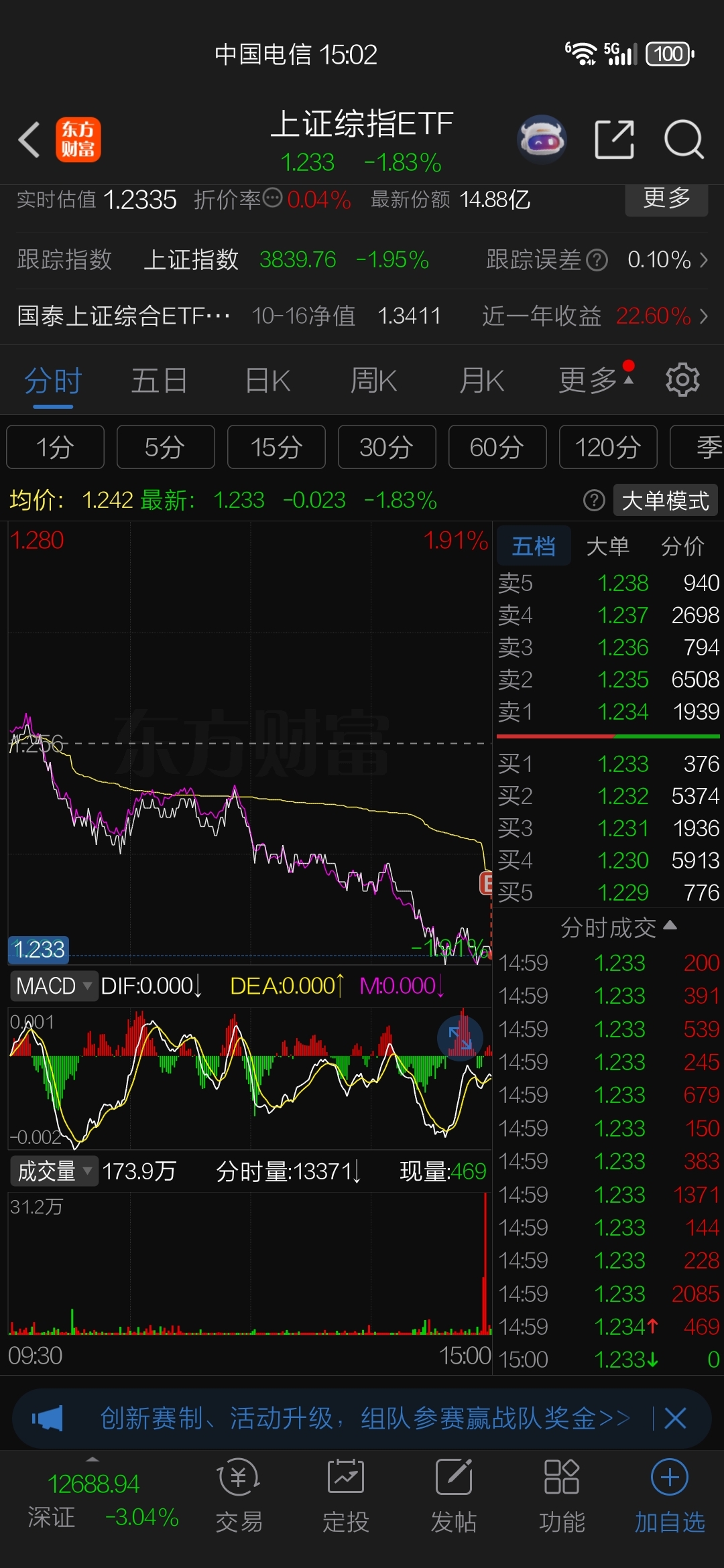 $上证综指ETF(SH510760)$ 尾盘进的,周一会被埋吗?