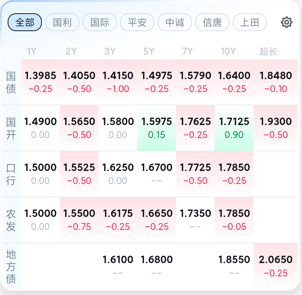 早盘银行间主要利率债收益率普遍震荡偏下,央妈对于资金面呵护态度较为明确,临近午间,多方交易力量积极卖出10年期国开债,其活跃券收益率逆势上行,信用债方面偏强震荡。