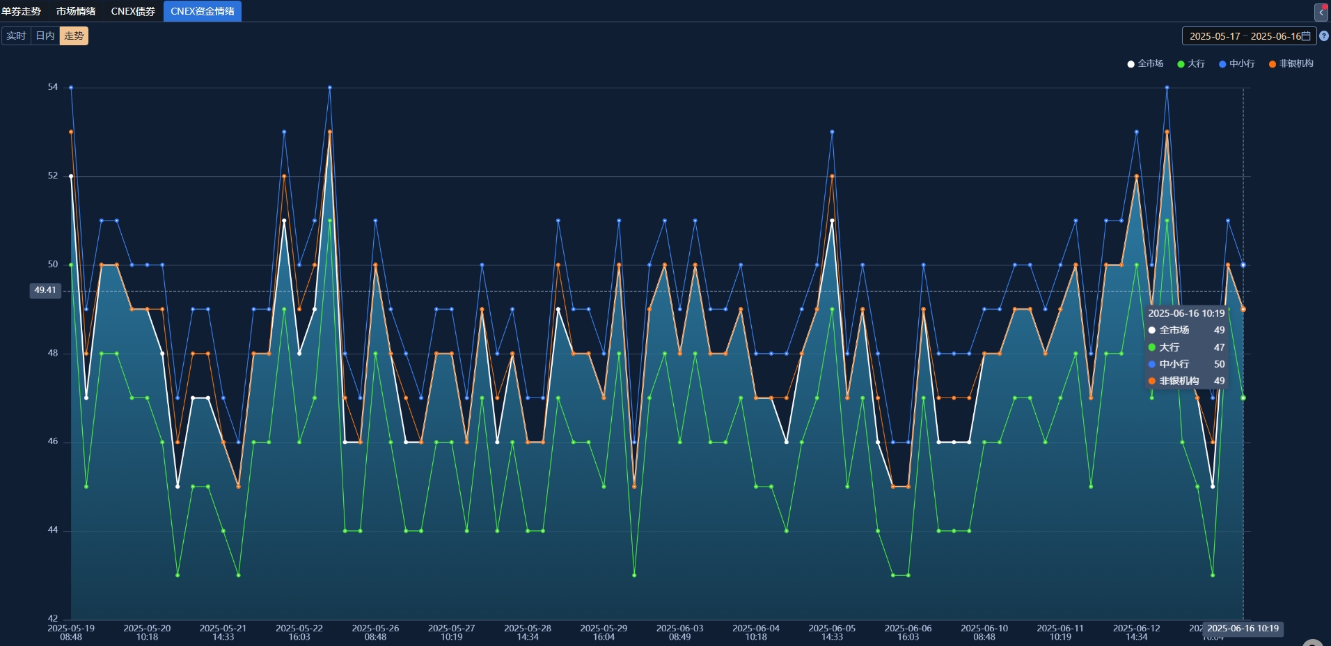 DR001报1.38%左右,DR007报1.52%左右,资金情绪均衡(CNEX资金面情绪指数在49)。
