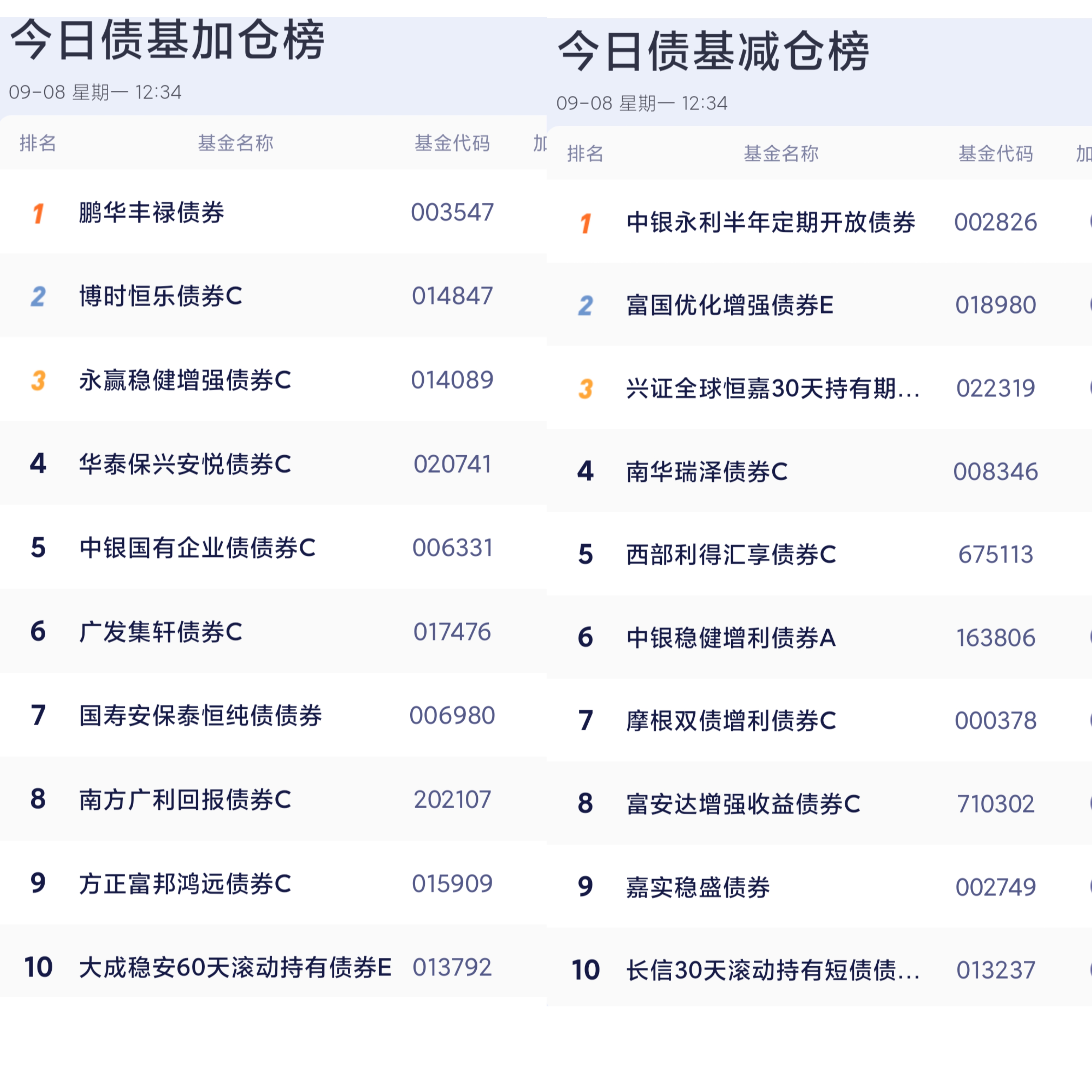 六、债券基金加减仓榜单