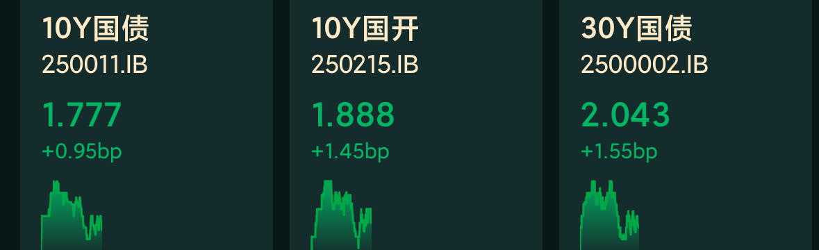 十年期国债收益率:1.777%,+0.95BP(国债收益率越跌,债市越涨)