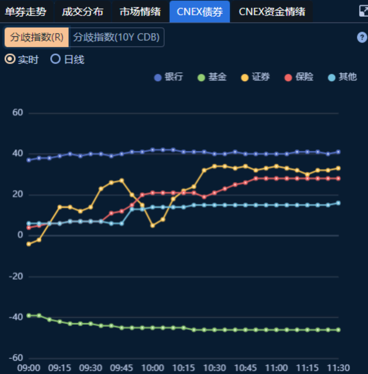 债券分歧指数来看,基金大力出券,银行、保险、证券等均为买方情绪。