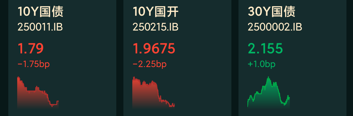 十年期国债收益率:1.79%,-1.75BP(国债收益率越跌,债市越涨)