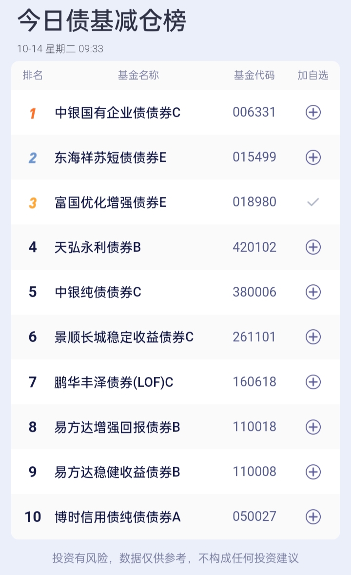 $鹏华丰禄债券(OTCFUND|003547)$。$华泰保兴安悦债券C(OTCFUND|020741)$。$南方中债7-10年国开行债券指数A(OTCFUND|006961)$。$永赢鑫欣混合C(OTCFUND|018603)$。$富国优化增强债券E(OTCFUND|018980)$。$汇添富多元收益债券C(OTCFUND|470011)$。$方正富邦鸿远债券C(OTCFUND|015909)$。$东方添益债券(OTCFUND|400030)$。$国泰惠丰纯债债券A(OTCFUND|007214)$。$华泰保兴安悦债券C(OTCFUND|020741)$