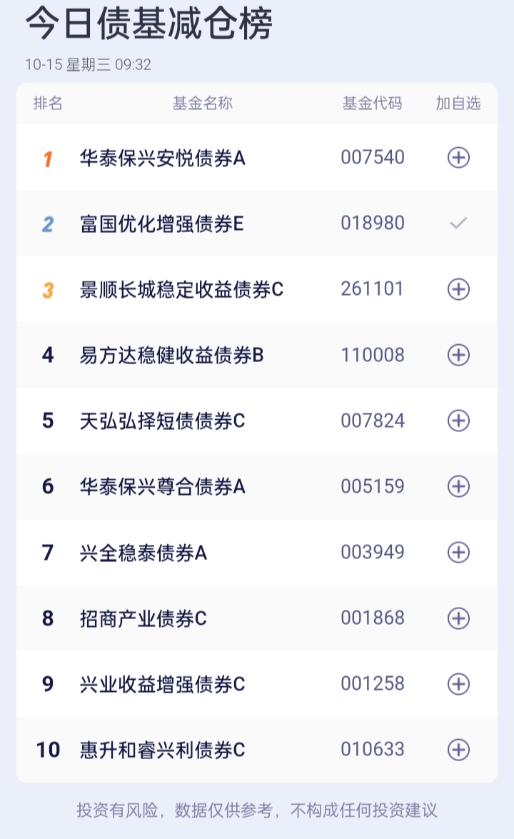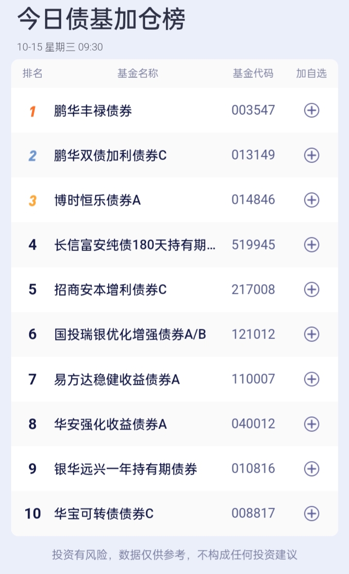 $鹏华丰禄债券(OTCFUND|003547)$。$华泰保兴安悦债券C(OTCFUND|020741)$。$南方中债7-10年国开行债券指数A(OTCFUND|006961)$。$永赢鑫欣混合C(OTCFUND|018603)$。$富国优化增强债券E(OTCFUND|018980)$。$汇添富多元收益债券C(OTCFUND|470011)$。$方正富邦鸿远债券C(OTCFUND|015909)$。$东方添益债券(OTCFUND|400030)$。$国泰惠丰纯债债券A(OTCFUND|007214)$。$华泰保兴安悦债券C(OTCFUND|020741)$