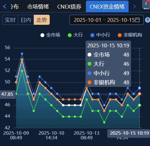 DR001报1.31%左右,DR007报1.40%左右,资金情绪宽松(CNEX资金面情绪指数在48)