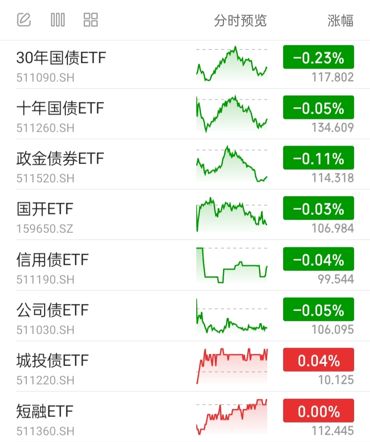 信用债ETF、公司债ETF、城投债ETF,代表信用债基。2跌1涨