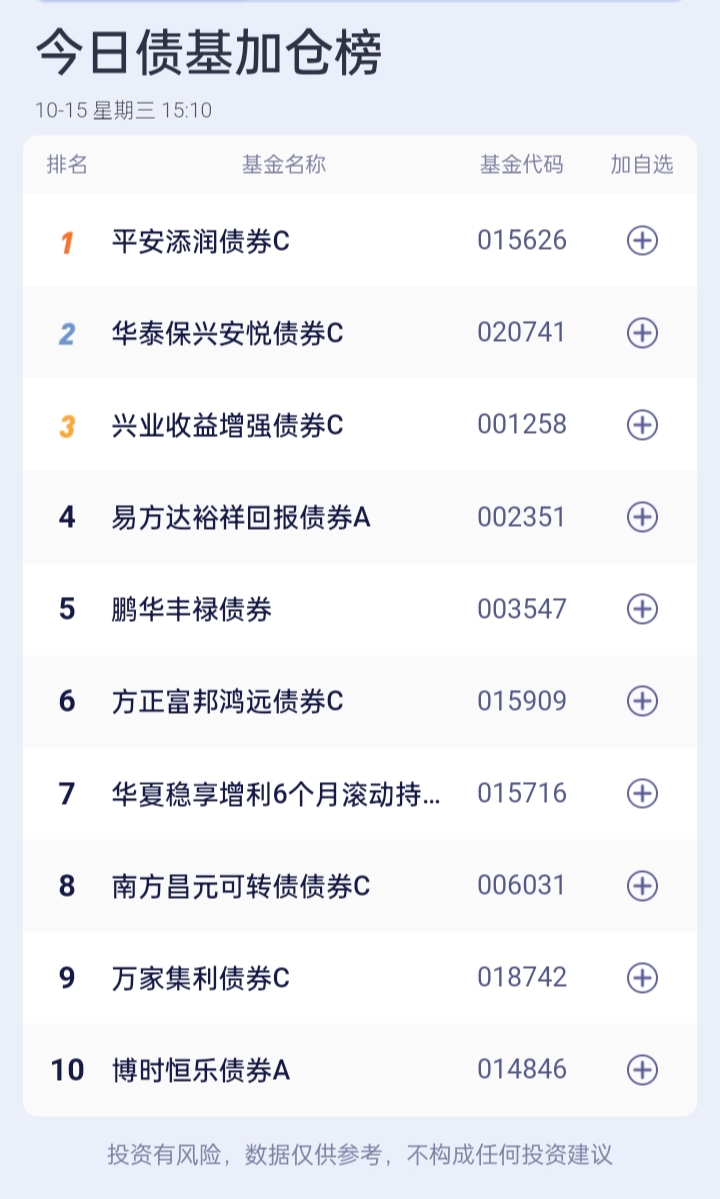 $华泰保兴安悦债券C(OTCFUND|020741)$。$南方中债7-10年国开行债券指数E(OTCFUND|013594)$。$华泰保兴安悦债券A(OTCFUND|007540)$。$永赢稳健增强债券C(OTCFUND|014089)$。$东方添益债券(OTCFUND|400030)$。$方正富邦鸿远债券C(OTCFUND|015909)$。$南方中债7-10年国开行债券指数A(OTCFUND|006961)$。$易方达增强回报债券A(OTCFUND|110017)$。$汇添富多元收益债券C(OTCFUND|470011)$。$国泰惠丰纯债债券A(OTCFUND|007214)$