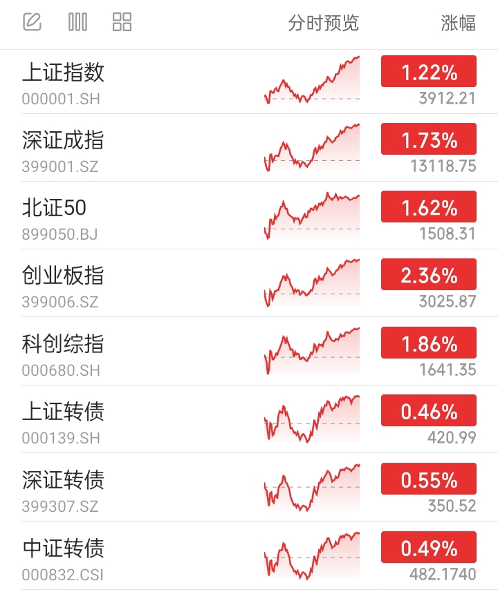A股市场重要指数:全部上涨。今天偏股混基可能上涨