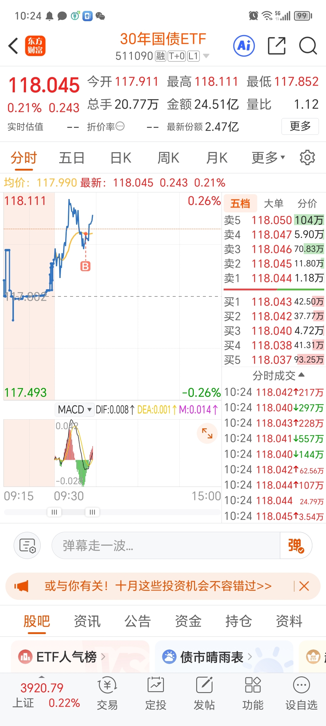 $30年国债ETF(SH511090)$ 已经买了,今天收盘能上118.2,那么这次反弹的最终目标就是123仅供参考