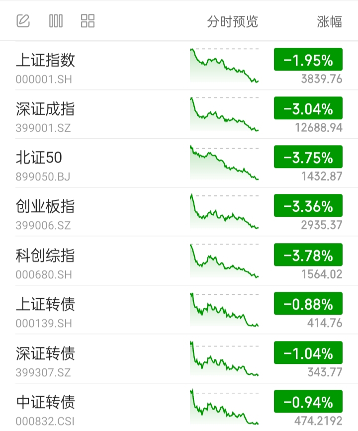 A股市场重要指数:全部下跌。今天偏股混基可能下跌